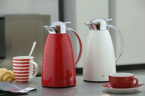 Ganz nach Ihrem Gusto. Mit dieser Thermoskanne wird guter Geschmack in Form gebracht. Besonders herausragend ist ihre durchgestylte Optik: die wohltuend sanften Übergänge vom Ausgießer in den glänzenden Korpus, der große, verchromte Griff. Das ist ansprechendes Design in perfekter Qualität.