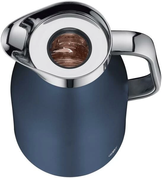 Isolierkanne Skyline in dark denim. Die Isolierkanne in einem eleganten Dunkelblau ist nicht nur klassisch schön, sie hält ihren Inhalt 12 Stunden lang heiß und 24 Stunden lang kalt.