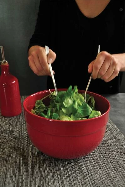 Trotz ihrer Leichtigkeit steht die hohe Rührschüssel herrlich fest auf dem Tisch. Sogar die große Schüssel lässt sich sehr gut im Arm halten, um z.B. schweren Spätzleteig zu rühren. Der hohe Rand erlaubt ein optimales Mischen. Damit ist die Schüssel ideal zum Zubereiten von Salaten, Nudeln oder auch Teig geeignet. Die ofenfeste Keramik hält lange heiss oder kalt.