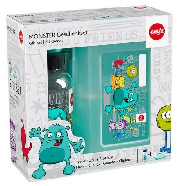 Emsa Kids Trinkflasche und Brotdose Monster, 2-teilig. Das Set besteht aus einer praktischen Brotdose und 0,4 Liter Trinkflasche.