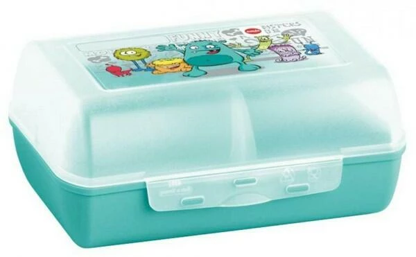 Neben der 0,4 Liter Trinkflasche enthält das Set noch eine Brotdose. Die aus Kunststoff bestehende Brotdose mit eingearbeiteten, kindgerechten Dekor und herausnehmbarer Trennwand lässt sich beidseitig öffnen und kann leicht ineinander gestapelt werden. Zusätzlich hält die Dose jeder Spülmaschine stand. Einer farbenfrohen und abwechslungsreichen Pause steht mit dieser Brotdose somit nichts mehr im Wege.