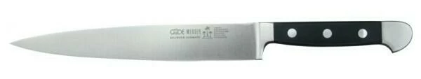 Güde Messer aus der Serie Alpha. Der feinpolierte Griff besteht aus robustem und pflegeleichtem Hostaform und ist spülmaschinengeeignet. Die Klinge ist rostfrei, eisgehärtet und handgeschärft. Die Güde Messer der Alpha-Serie erfüllen die Anforderungen der Richtlinien an Messer für den Einsatz in der Gastronomie und bieten innerhalb der Güde-Serien die größte Modellvielfalt.