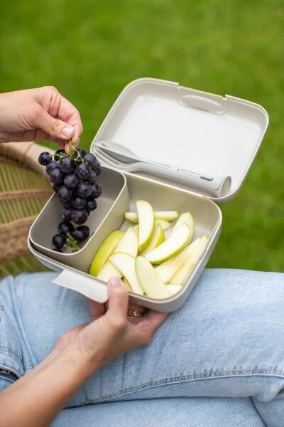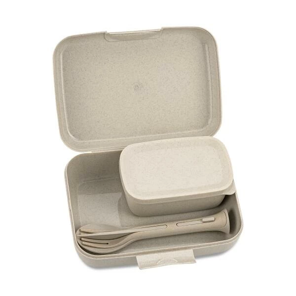 koziol Lunch Box Candy ready mit Besteck-Set in sand. Einfacher und sicherer Transport für Ihr to go Essen.