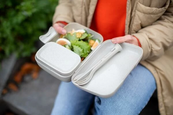 Lunchbox-Set CANDY READY hat alles, was man für ein gesundes Mittagessen unterwegs braucht. In der großen Box CANDY L und der auslaufsicheren Dose CANDY S sind Salate und Dressing, Gemüsesticks und Dip, Sandwiches und Obst sauber voneinander getrennt und das Essen bleibt appetitlich bis zum Verzehr. Besteckset KLIKK POCKET findet in der großen Box ebenfalls Platz und rundet das Lunchbox-Set perfekt ab.