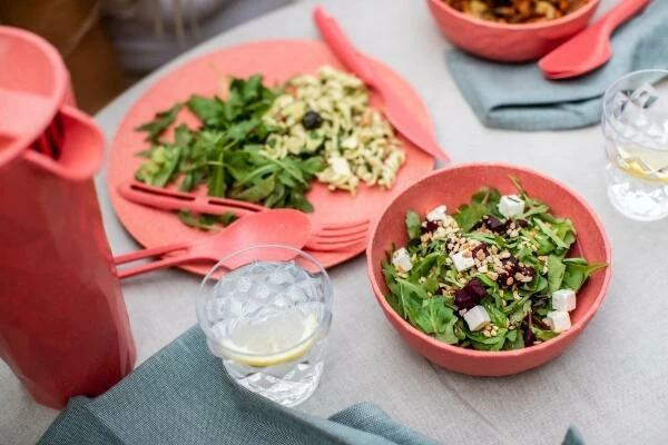 Die großen Teller von koziol sind robust, stapelbar und 100% CO2-neutral.