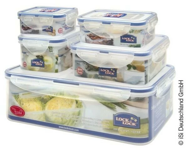 - Set bestehend aus 5 Lock & Lock Frischhalteboxen mit 1 x 180ml, 1 x 350ml, 1 x 600ml, 1 x 870 ml, 1 x 3,6 L Fassungsvermögen