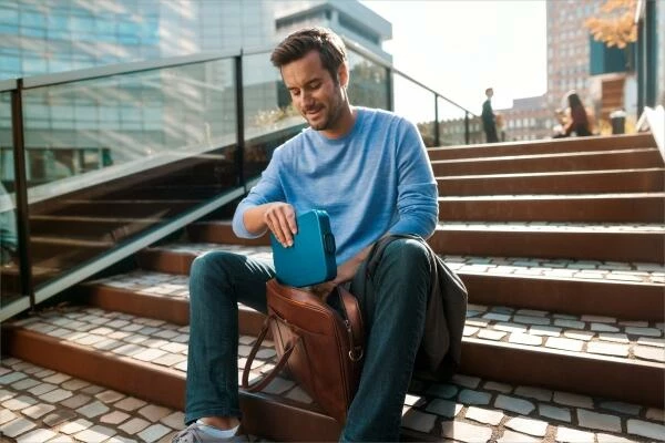 Lunchbox Take A Break flat in der Farbe Nordic Denim. Diese flache dunkelblaue Box von Mepal passt perfekt in eine Laptoptasche oder einen Rucksack und ist geeignet für maximal 4 Butterbrote.