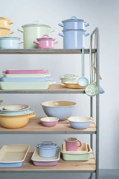 Die Schüsseln sind stapelbar und somit platzsparend zu verstauen. Der Werkstoff Emaille garantiert eine glatte und porenlose Oberfläche, die die Schüssel aromaneutral, bakterienhemmend, robust sowie leicht zu reinigen macht.