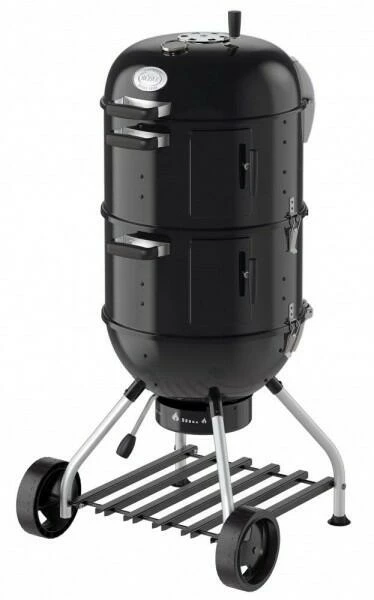 Der mobiler Smoker von Rösle überzeugt nicht nur mit seiner großzügigen Grillfläche von 2 x Ø 50 cm (5468 cm²) sondern auch mit einem praktischen Deckelscharnier, das sich im 45° Winkel zu öffnet. Der Smoker überzeugt außerdem durch ein großes Deckelthermometer und die bequeme Zuluftsteuerung mit Ascheauffangbehälter. Durch die stabilen leichtgängige Räder und ergonomische Griffe an den Smokerringen sowie Verschlußklammern zur Fixierung lässt er sich einfach und sicher transportieren und bedienen. Der Smoker wird mit einem Räucherrack für Fisch sowie 6 Räucherhaken geliefert.