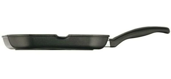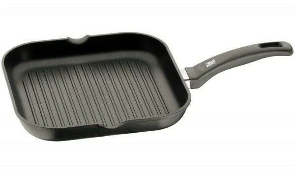 Die praktischen und formschönen Grillpfannen werden schnell heiß, und die Hitze verteilt sich gleichmäßig. So müssen Sie Ihre Rinderfilets, Putensteaks und Kartoffelecken nicht ständig hin- und herschieben – denn alle Speisen mit gleicher Garzeit werden zum selben Zeitpunkt fertig. Das spart Zeit und Energie. Wenn Sie für das besondere Aroma mit Öl grillen, läuft das überschüssige Fett in die speziell dafür konstruierten Rillen ab. Ein Tipp: Marinieren Sie Ihr Fleisch eine Stunde vor dem Grillen und lassen Sie die frischen Kräuteraromen einziehen. Auch Grillwürste passen in den quadratischen Pfannen perfekt nebeneinander und erhalten dank des geriffelten Bodens appetitliche Grillstreifen. Durch die Antihaftversiegelung reicht eine einfache Handwäsche zur Reinigung aus.