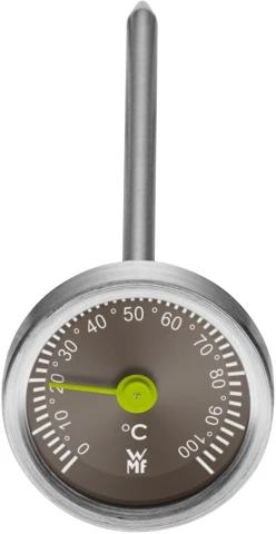 WMF Instant Thermometer. Perfekt und auf den Punkt gegart: Mit dem Bratenthermometer von WMF messen Sie die Kerntemperatur von saftigen Braten während der gesamten Garzeit im Ofen. Dazu stecken Sie den 13 Zentimeter langen Dorn aus rostfreiem Cromargan® einfach in die Mitte des Fleisches.