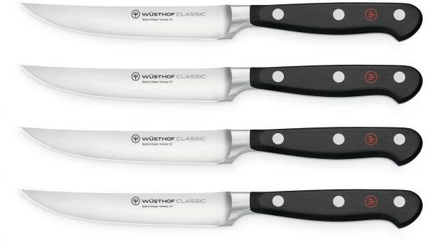Wüsthof Steakmessersatz mit 4 Steakmessern. Mit der extra scharfen Klinge lassen sich nicht nur Steaks hervorragend portionieren – ein Muss bei allen Steaks und Fleischgerichten.