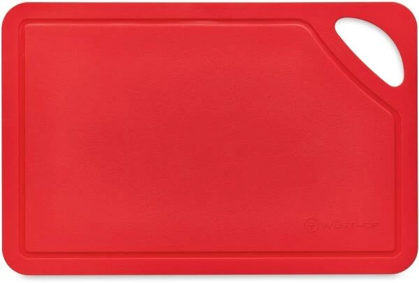 Wüsthof Schneidunterlage in rot. Praktisches Schneidbrett aus Kunststoff mit Saftrille.